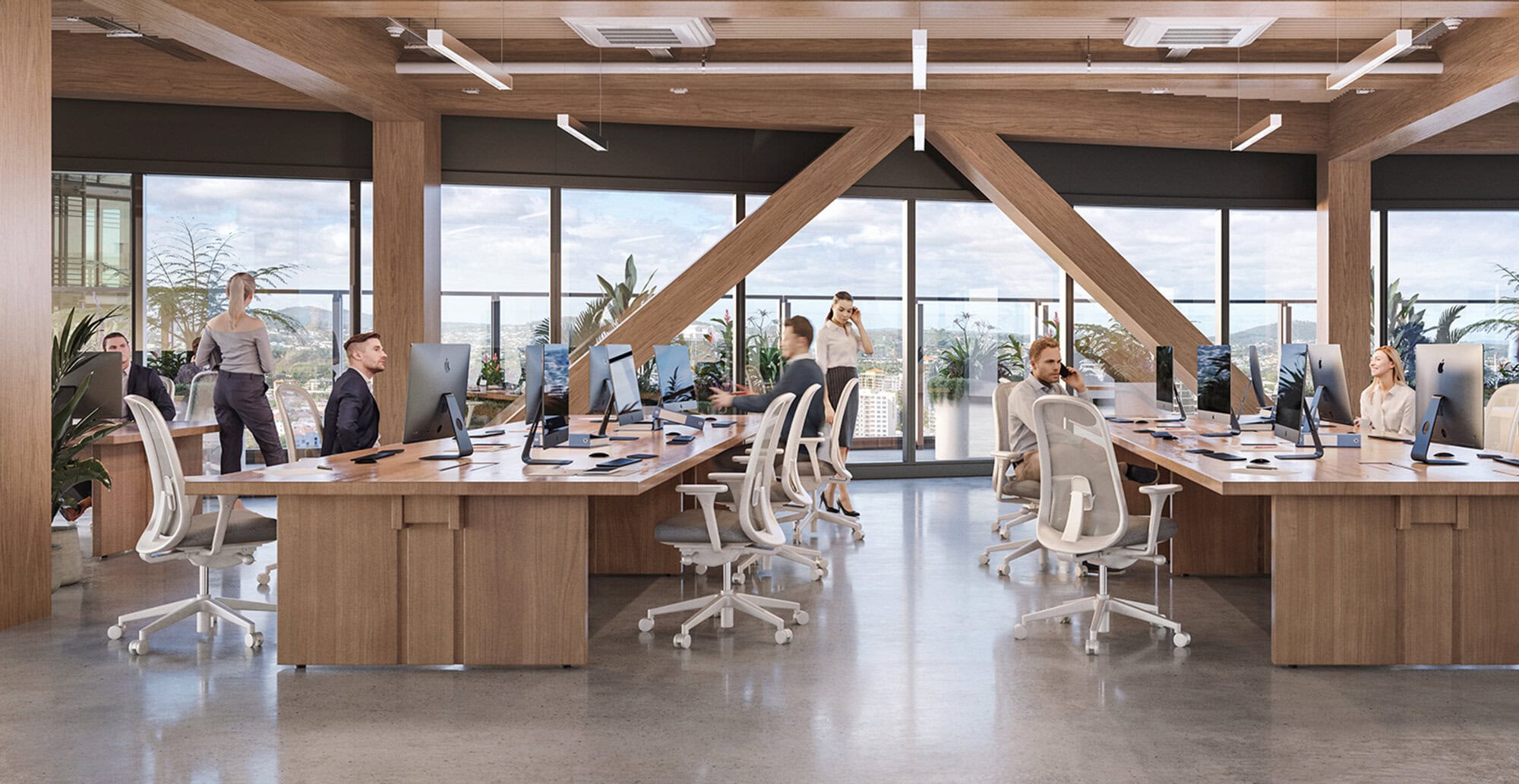From timber-finished floors at the crown with sweeping views, to flexible layouts and outdoor terraces below — these elevated workspaces are designed to function at every level.