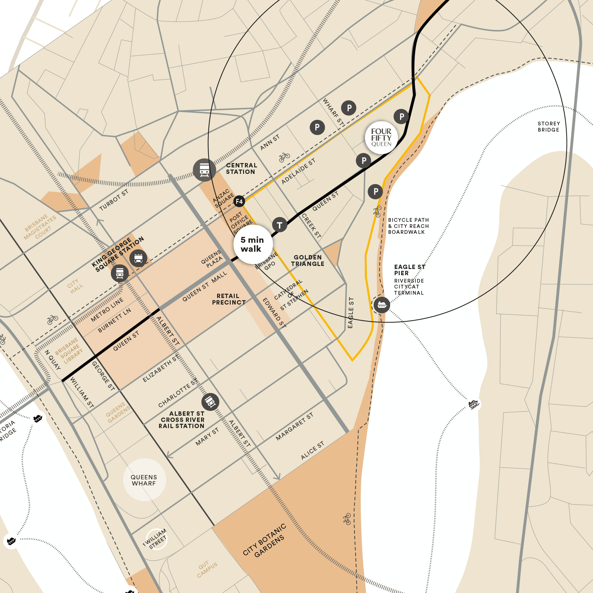 Located in Brisbane’s Golden Triangle, Four Fifty Queen sits at the nexus of transport, lifestyle and commerce. Surrounded by riverfront amenity and key business precincts, it is a position that connects people and opportunity.